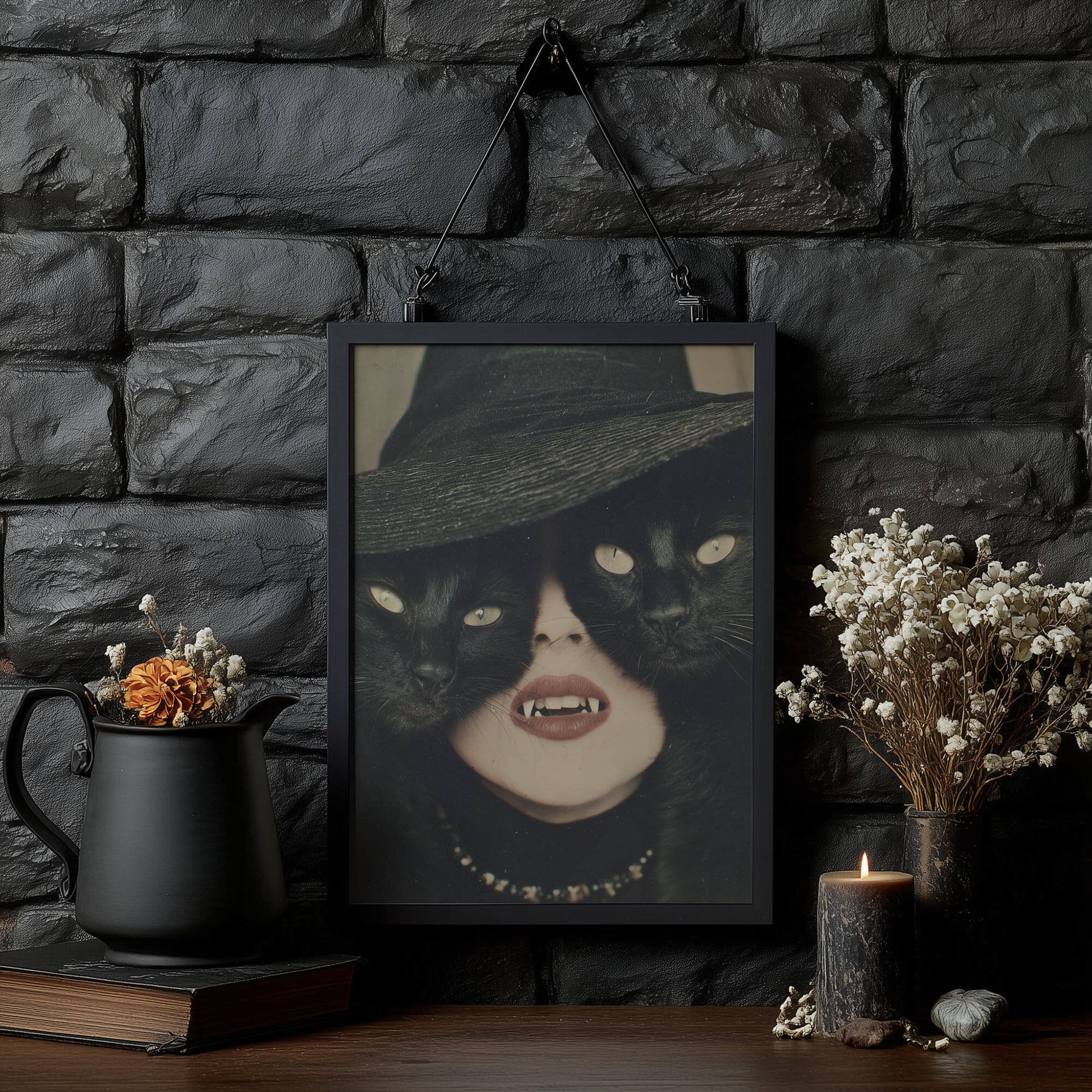 This print is perfect for anyone seeking quirky posters for room décor with a wicked twist. Its eerie charm and surreal composition make it a standout piece of macabre merch—ideal for gothic collectors, familiar-obsessed cat parents, or anyone who believes a home isn’t complete without at least one cursed object.